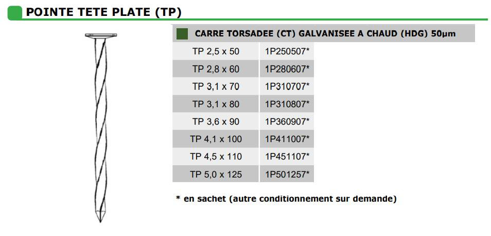 Avis sur "Pointes TP - Carrées-torsadées galvanisées à chaud 50µm HDG - 5kg"