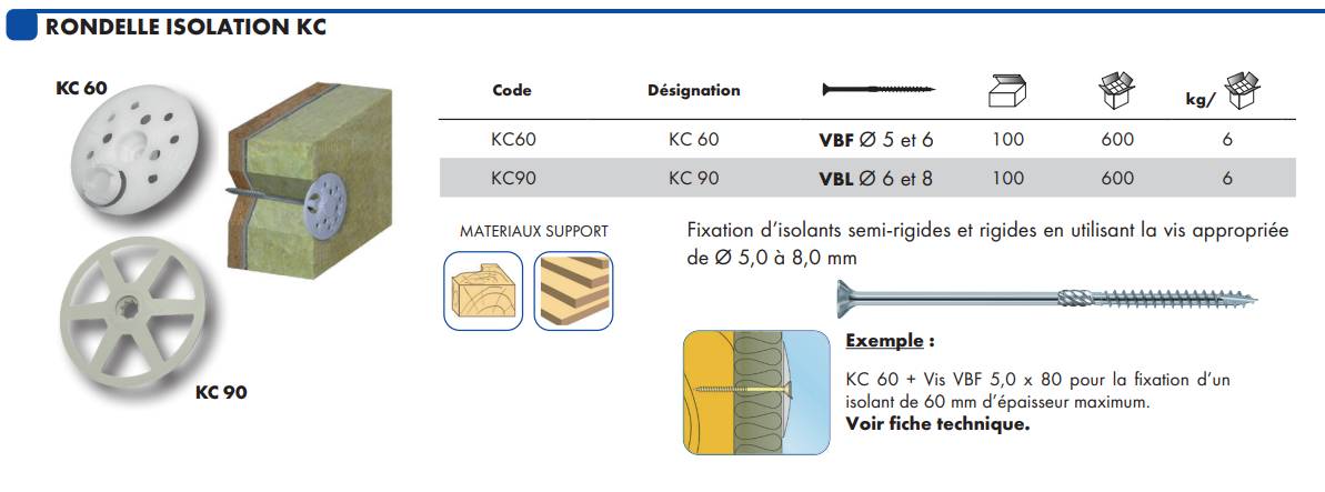 Fixation d’isolants semi-rigides et rigides en utilisant la vis appropriée de Ø 5,0 à 8,0 mm