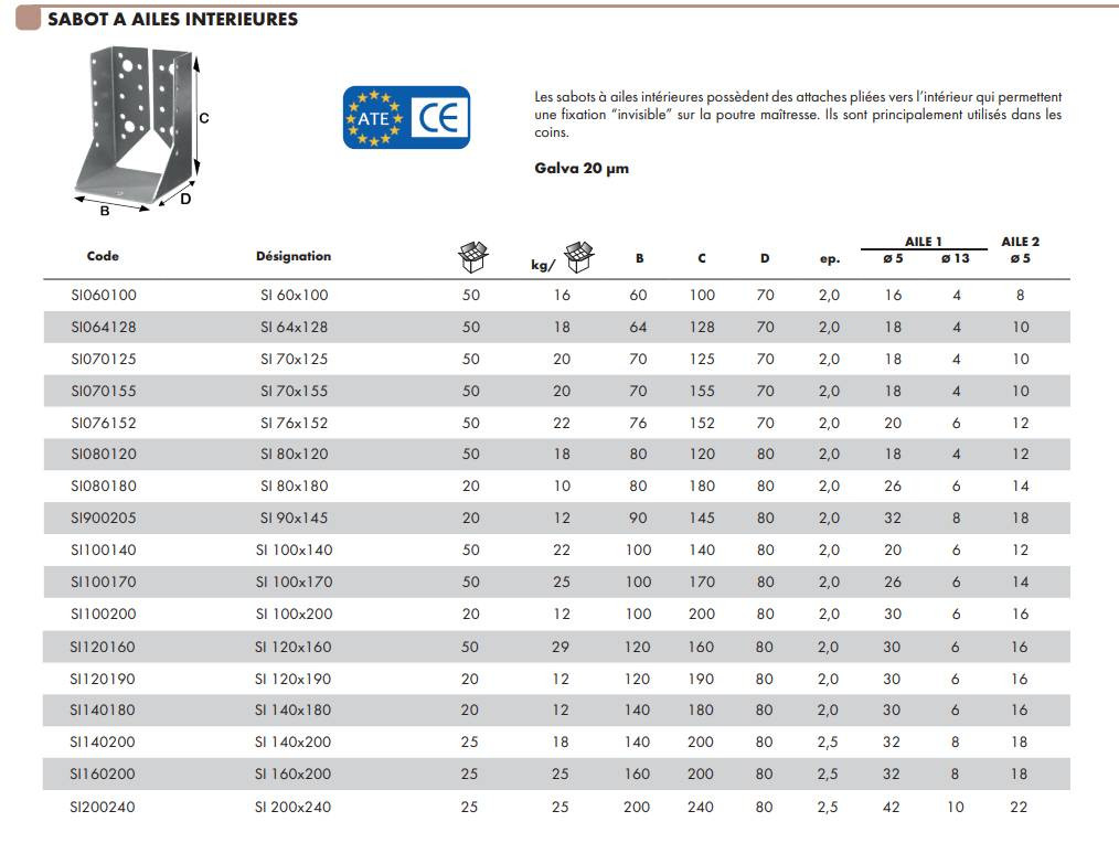 Accueil >> Connecteurs >> Sabots à ailes >> Sabots à ailes intérieures