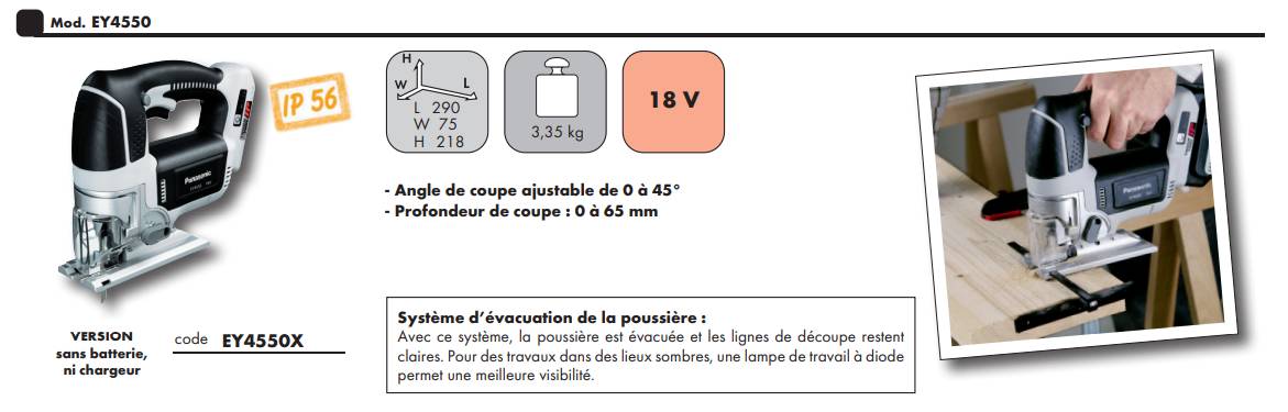 Avis sur "Scie sauteuse SANS FIL Li-ion 18V - EY4550"