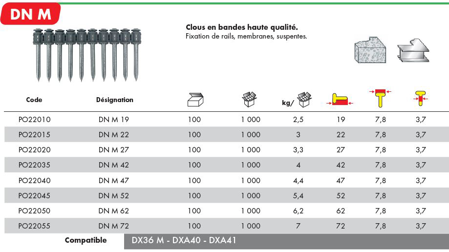 Accueil >> >> Clous pour cloueurs poudre >> Série clou DN M