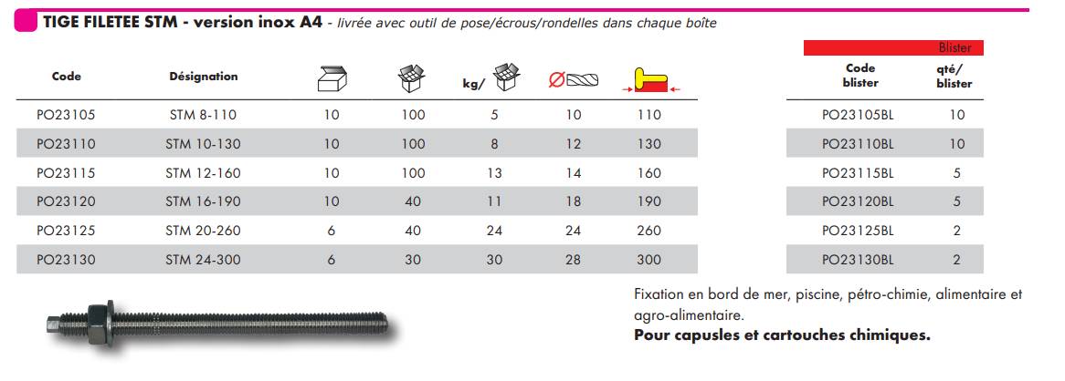 Accueil >> Chevillage, Scellement Chimique, Colle >> Tiges filetées Ecrous et Rondelles >> Tige filetée STM version INOX A4
