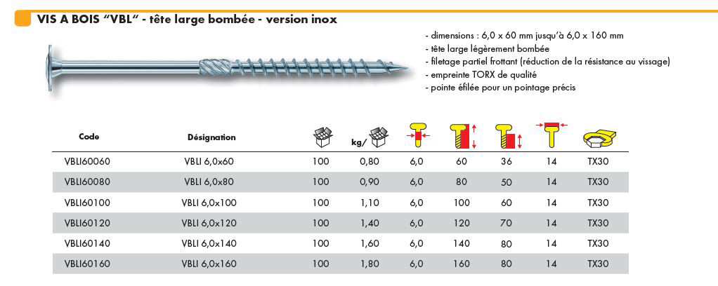 Avis sur "Vis à bois VBL - Tête large bombée - version inox"