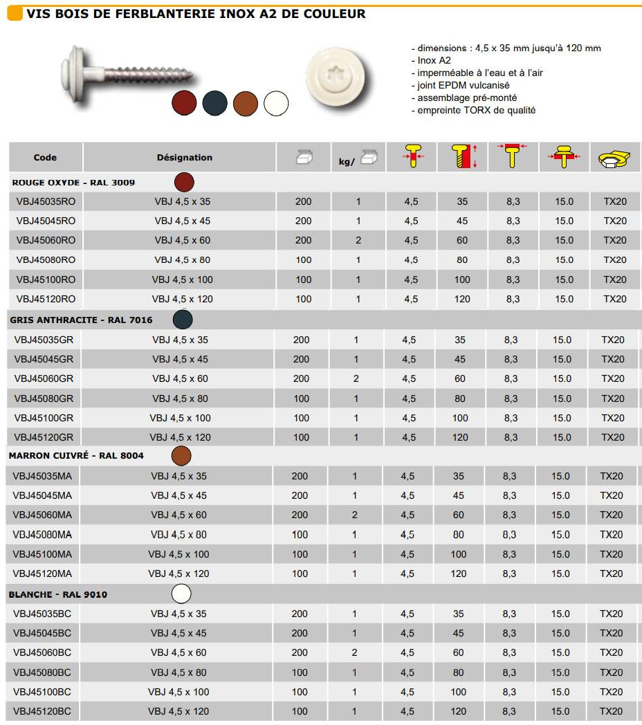 VBJ 4,5 x 60 inox rouge TX20 || Qté : 200 vis