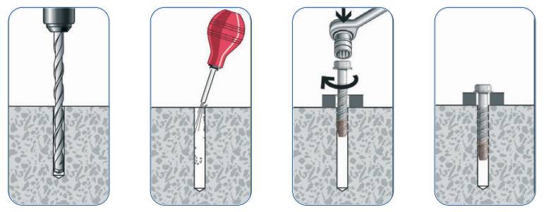 Matériaux supports : Béton fissuré, béton non-fissuré, hourdis, pierre naturelle, brique pleine et creuse, silico-calcaire solide et creuse, béton léger.