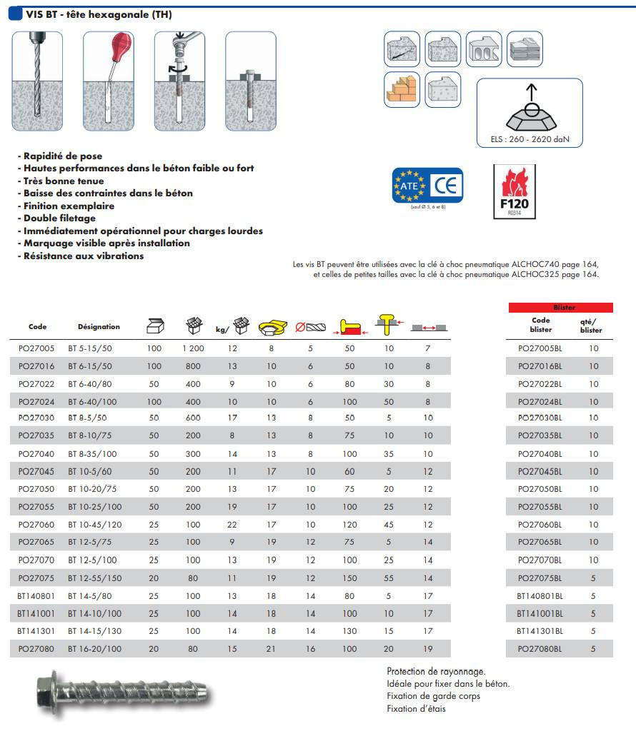 Vis BT - tête hexagonale (TH) - Fiche technique