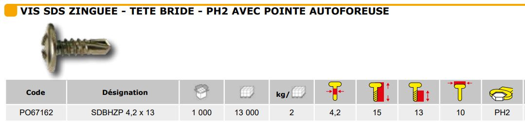 Avis sur "Vis SDS - Tête bride - PH2 - pointe autoforeuse"