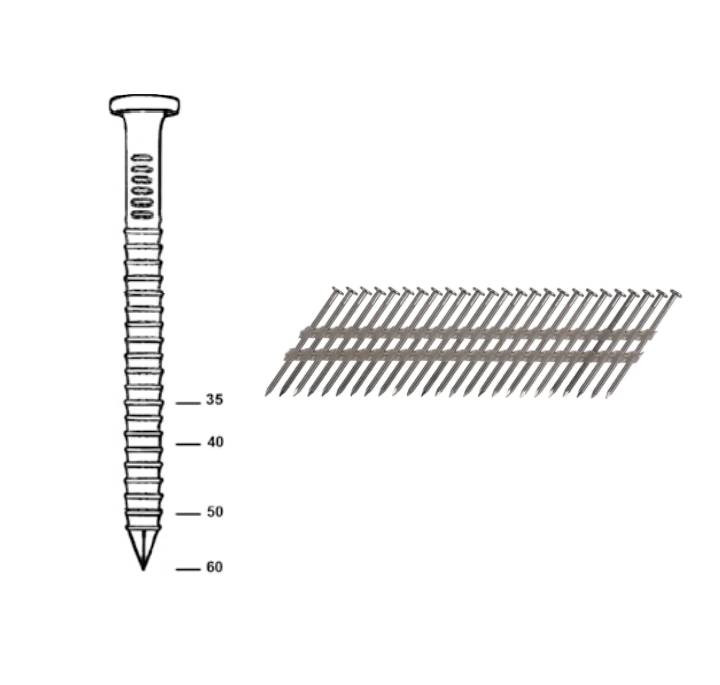 (pour plus de détails cliquez ici)Pointes en bandes 34° tête ronde