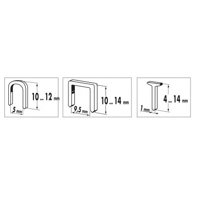 - des agrafes de type PF d'une longueur de 10 à 14 mm.