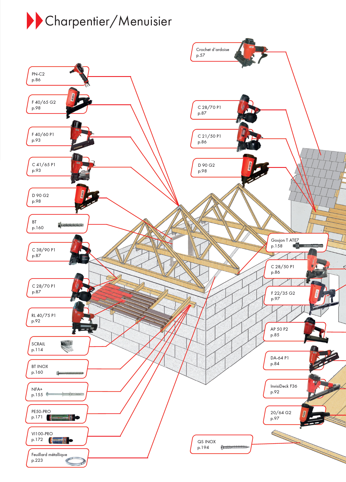 Cloueur sabot pneumatique ALSAFIX C 41/65 P1 pour pointes ANCRAGE 16° de 35 à 60mm |
