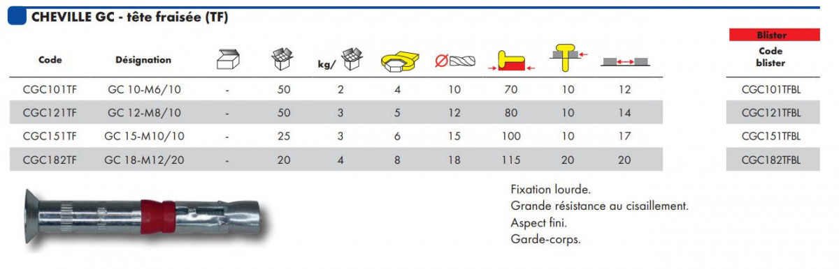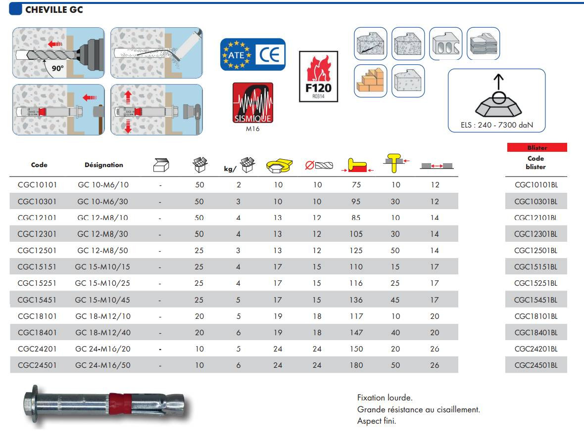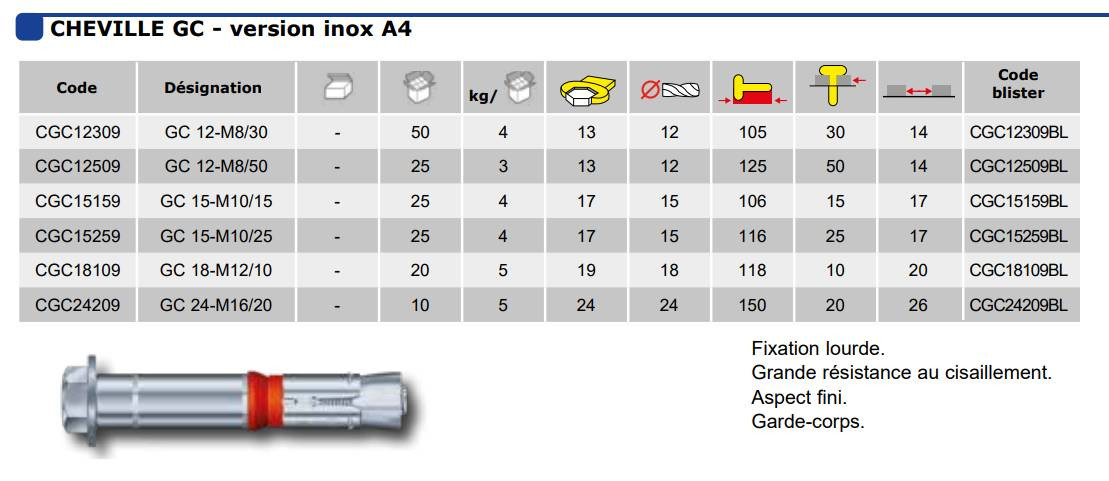 (pour plus de détails cliquez ici)Chevilles GC - métalliques |