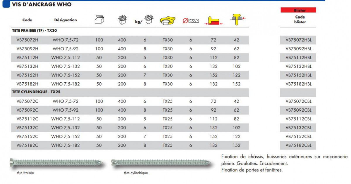 à partir de 8.76 € TTCFixation de châssis, huisseries extérieures sur maçonnerie pleine. Goulottes. Encadrement. Fixation de portes et fenêtres. |