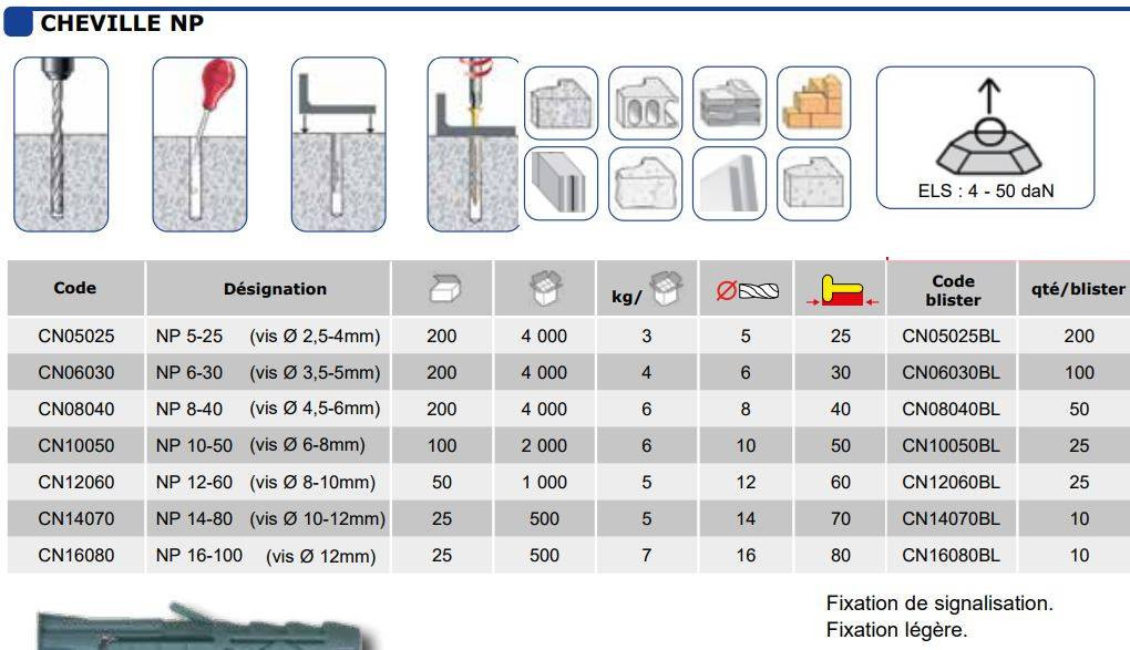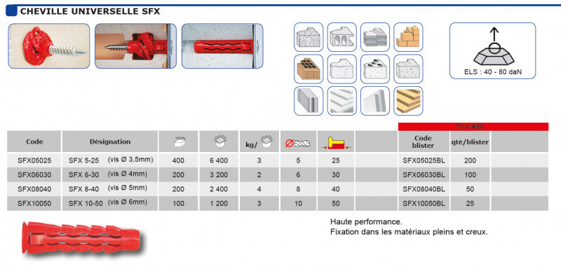 à partir de 8.96 € TTCChevilles universelles pour des matériaux tels que le béton, pierre naturelle, brique pleine,... |