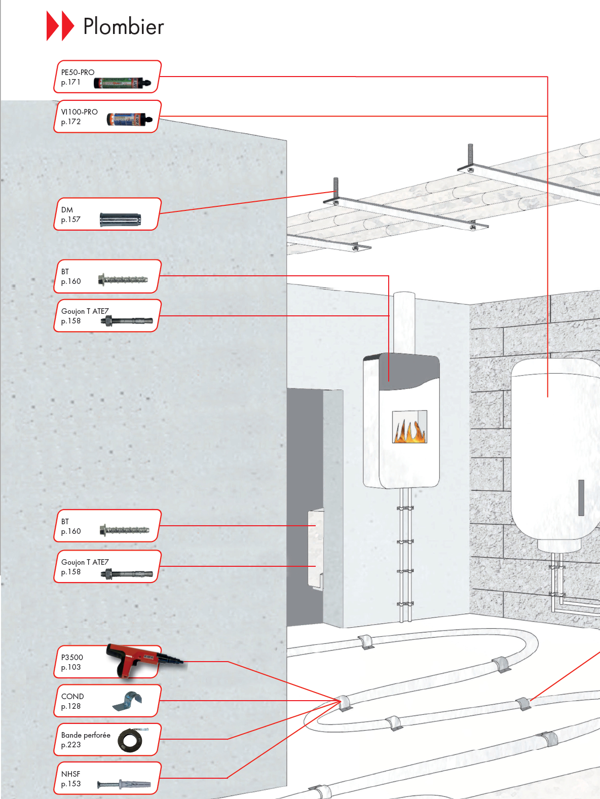 Vous trouverez ci-dessous divers cloueurs à gaz ou à poudre, chevilles, scellement chimique pour les métiers de la plomberie.