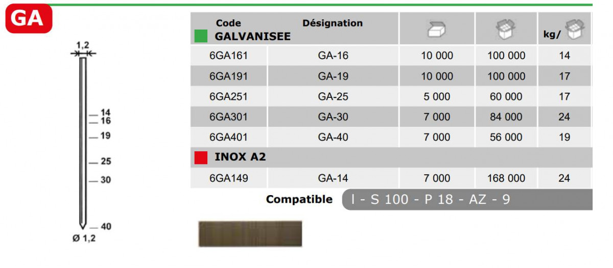 / 29.40 € TTCPointes sans tête GA assurent une fixation invisible, solide et durable pour moulures, baguettes, petits cadres et finitions en menuiserie ou agencement décoratif. |
