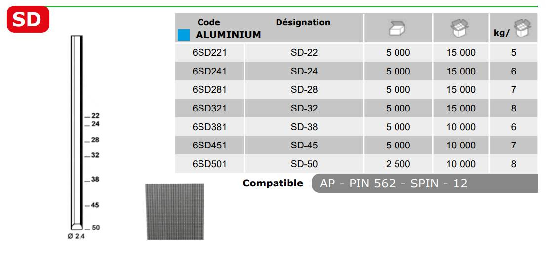 / 201.59 € TTCLes chevilles SD en aluminium assurent une fixation rapide, solide et discrète pour menuiserie, cadres de fenêtres, écrans sous toiture et matériaux légers sur ossature bois. |