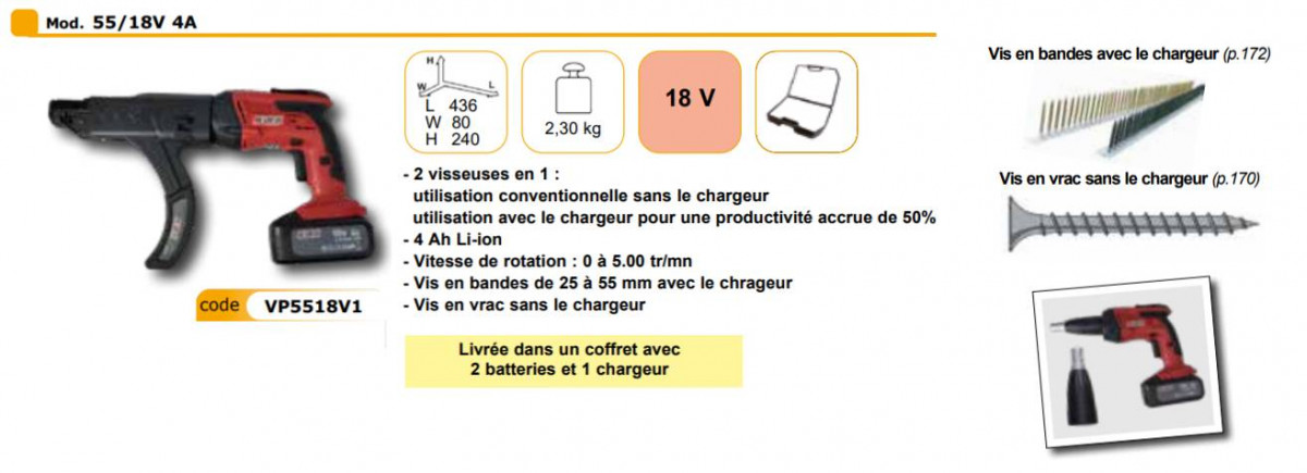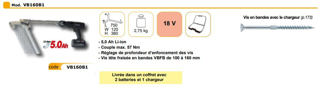 (pour plus de détails cliquez ici)Visseuse à bandes 18V - VB160-B1 |